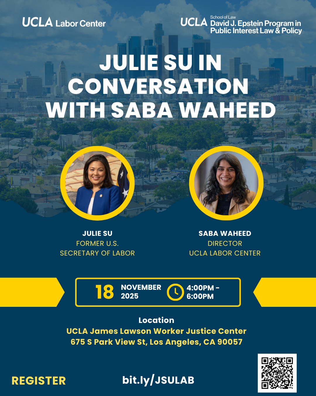 Join us on Tues, Nov 18, 2025 to hear from Fall Margaret Levy Public Interest Fellow Julie Su, Former U.S. Secretary of Labor, in conversation with Saba Waheed, Director of … Continued
