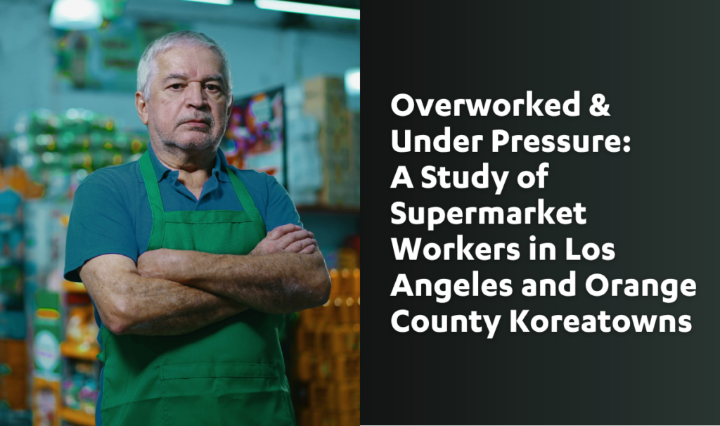 Overworked & Under Pressure: A Study of Supermarket Workers in Los Angeles and Orange County Koreatowns examines supermarket establishments in the Koreatowns located in Los Angeles, Buena Park, and Garden Grove—areas that reflect broader trends in ethnic entrepreneurship, gentrification, and corporate consolidation. With nearly 2,400 supermarkets across both counties, the sector employs over 100,000 workers, many of whom are low-wage, immigrant workers with limited labor protections.