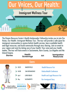 The Dream Resource Center is proud to present Our Voices, Our Health: Immigrant Wellness Tour, a statewide initiative lead by the Health Ambassador Fellowship.